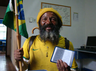 Em cada cidade que passa o homem, que deixou a pequena cidade de Grajau, no interior do Maranhão, registra no correio uma carta. Isto para oficializar a sua estadia em cada município.